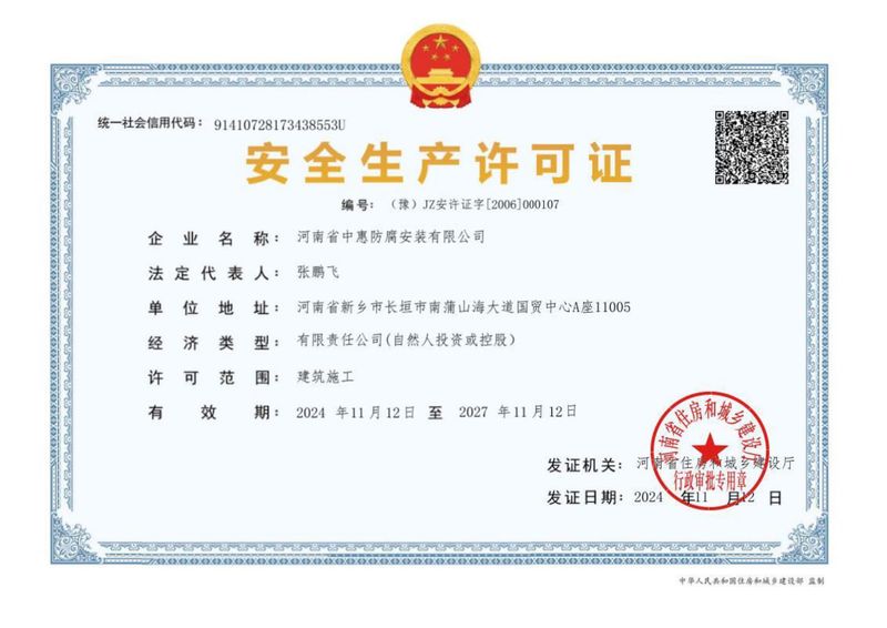 河南省中惠防腐安裝有限公司愿以豐富的施工經驗,***的技術,***的設備,***的管理,***的服務,竭誠為國內外廣大的用戶提供***滿意、******的工程作品。
